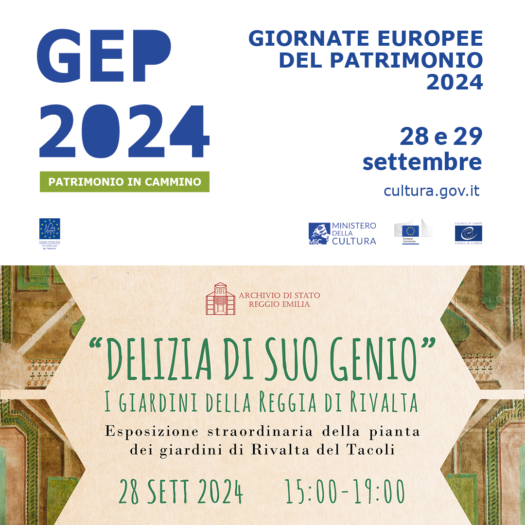 In occasione delle Giornate europee del patrimonio – GEP 2024, l’Archivio di Stato di Reggio Emilia, in via del tutto eccezionale, esporrà al pubblico la “Pianta dei Ducali giardini e palazzo da sua altezza serenissima fatto edificare in Rivalta” disegnata su carta foderata con tela dal conte Alfonso Tacoli, nel 1751. Si tratta, a detta di molti, della più fedele rappresentazione dei perduti giardini della Reggia di Rivalta, realizzata quando il palazzo era all’apice dello splendore ma raramente esibita al pubblico a causa delle notevoli dimensioni e, soprattutto, della sua estrema fragilità. La sua esposizione è dunque un evento di particolare rilevanza, anche in considerazione dei progetti di recupero e valorizzazione della reggia dei suoi giardini.